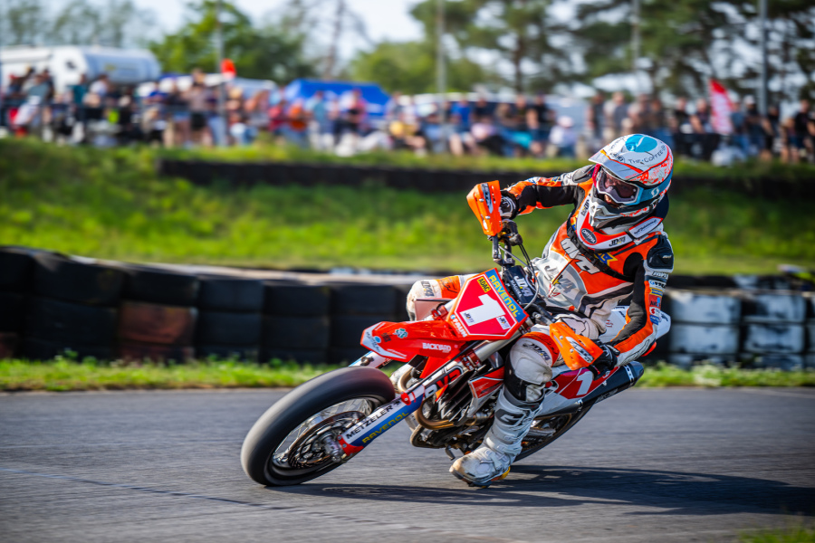 Zum Auftakt der Internationalen Deutschen SuperMoto Meisterschaft gelang Jan Deitenbach ein Traumstart. Beim Heimrennen im westfälischen Harsewinkel konnte er am Wochenende mit dem Gesamtsieg glänzen! Der Titelverteidiger sicherte sich die Pole-Position, gewann souverän Lauf eins und verpasste nach einem Krimi den Sieg in Rennen zwei nur um 0,3 Sekunden. Damit geht er mit dem "Red-Plate" des Meisterschaftsführenden auch in zwei Wochen beim nächsten Rennen an den Start.